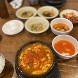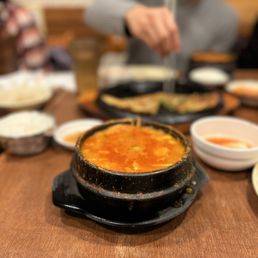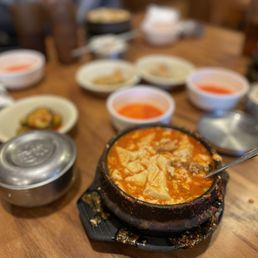 No-frills hole-in-the-wall spot that has a very small menu of extremely authentic Korean Tofu soup/stew I have never tried Korean Tofu soup, but I was glad that I got to try it here as they offer huge portions, a few different favor options, and also allow you to choose your spice level as well I went with a mild beef & kimchi soup and it was pretty tasty! They also serve a few unlimited small plates (which were solid) & rice as well.