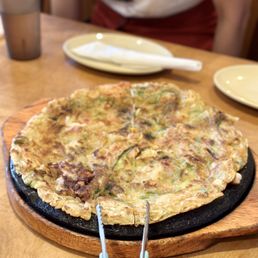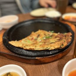 A friend recommended this restaurant, and we finally tried it for lunch today. Upon arriving, we were disappointed by how it looked outside, but once we entered, we were surprised by how clean and spacious it was. The restaurant had a traditional Korean house vibe, with old Korean writing pattern wallpapers and traditional Korean decorations. The space was cool, with many ceiling fans and A/C. Our server, Jin, was excellent. She provided attentive service, was friendly, and went the extra mile to meet our needs. All the food was delicious, with lots of side dishes that were freshly made and tasty. It's good that you can select the spice level for the soft tofu soup. The spicy pork was delicious, and the seafood pancake was good, with vegetables and squid pieces. We will go back and try other dishes soon.